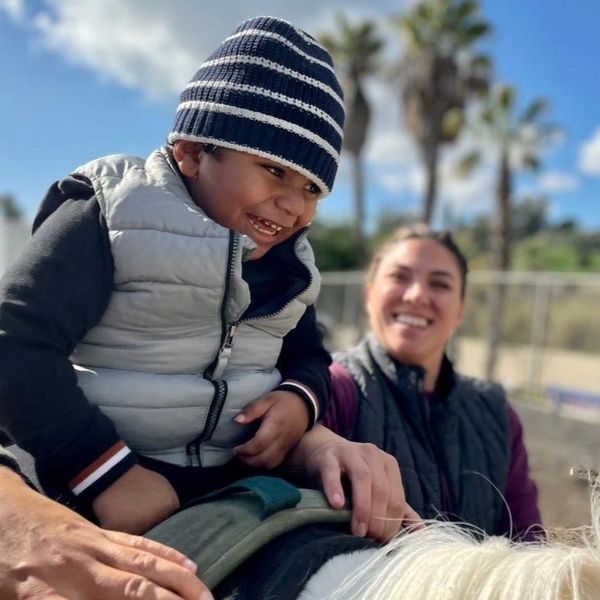 "Since the first session, I have been so moved by his ability to connect with our son. Bennett is 4 years old with spastic quad cerebral palsy and is non-verbal. Before Surf & Turf, he has never been able to participate in a therapy session without me being right there with him. That first day, they took off on the horse, and Bennett and I both shed some tears!